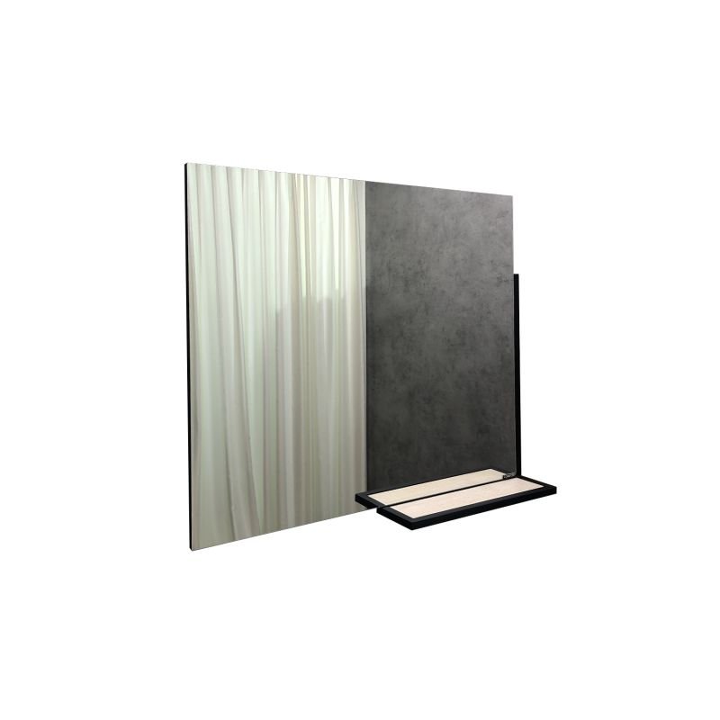 Зеркальное высококачественное полотно с амальгамой на основе серебра. Зеркало на металлическом каркасе с интегрированной полкой.