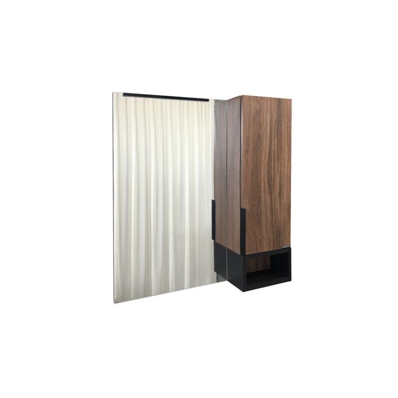 Зеркальное высококачественное полотно с амальгамой на основе серебра. Створка мебельного элемента оснащена петлями с системой плавного закрывания. За дверцей одна горизонтальная полка.