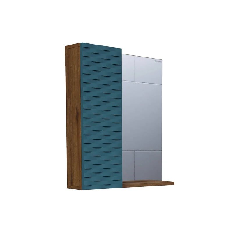 Шкаф-зеркало Альба-65 см отражает современные тенденции в дизайне мебели для ванных комнат: матовая пленка в цвете Бриз с 3D рисунком безупречно сочетается с текстурой под дерево , отсутствие лишних деталей.