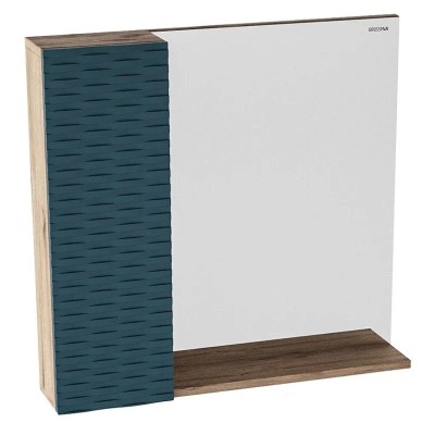Шкаф-зеркало Альба 80 см отражает современные тенденции в дизайне мебели для ванных комнат: матовая пленка в цвете Бриз с 3D рисунком безупречно сочетается с текстурой под дерево , отсутствие лишних деталей.