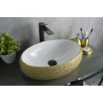 Раковина Gid Nc433 52219 накладная белая / золото 48...Серия Lago овальной формы — это испанское качество, соответствующее современным европейским требованиям. Раковина накладная GiD NC433 — уникальная модель в стильном белом цвете с золотистым рельефным бортом, созданная для современного интерьера. Её овальная форма гармонично дополняет пространство, создавая акцентный элемент в ванной комнате. Мелкопористая керамика отличает раковину долговечностью, устойчивостью к загрязнениям и простотой в уходе. Благодаря отсутствию отверстия под смеситель раковина позволяет реализовать различные дизайнерские решения по размещению смесителя. Накладной монтаж обеспечивает лёгкость установки и сохраняет максимум пространства на столешнице.