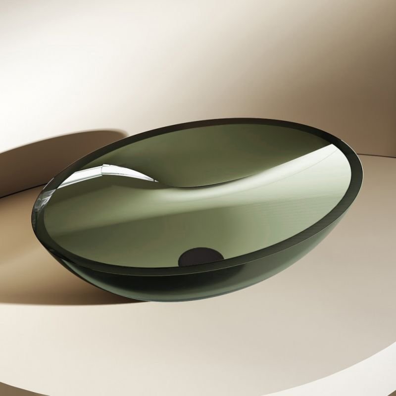 Раковина накладная прозрачная ABBER Kristall AT2802Vesuvian оливковая