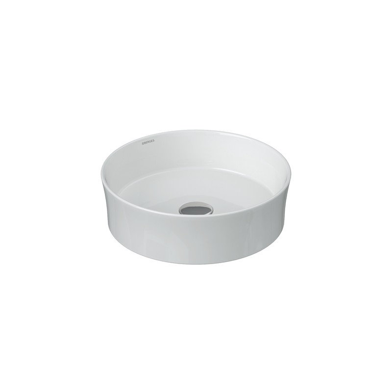 Накладная раковина из санфарфора Berges Ego SL диаметром 38 см. Высота 11,5 см. Круглой формы, без отверстия под смеситель, глянцевая белая.
