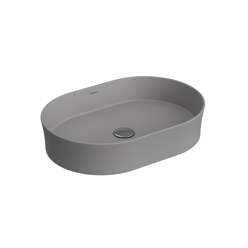 Раковина BERGES Ego SL накладная овал, 55x38 см, матовый серый, без отверстия под смеситель