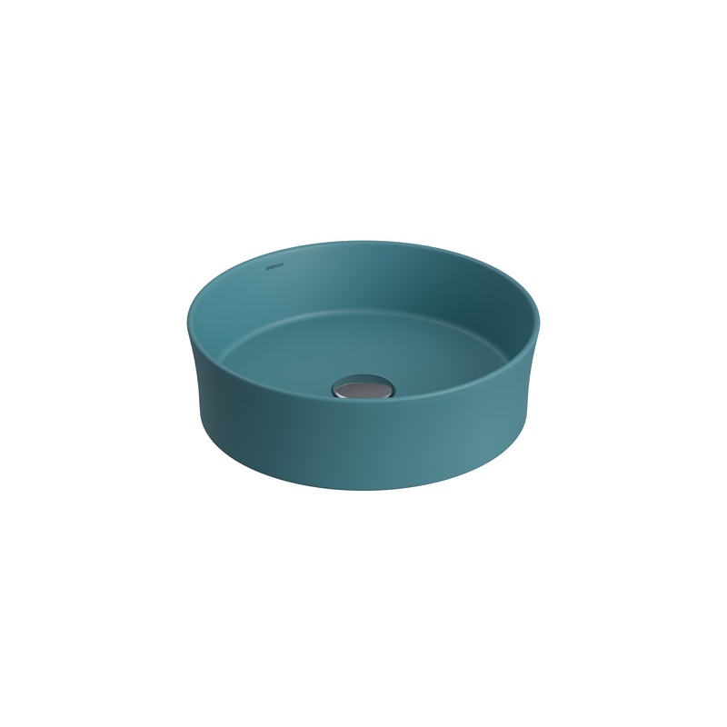 Накладная раковина из санфарфора Berges Ego SL диаметром 38 см. Высота 11,5 см. Круглой формы, без отверстия под смеситель, матовый темно-синий.