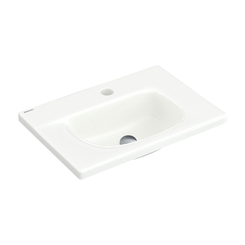 Подвесная раковина из санфарфора Berges Small размером 45х31 см. Прямоугольной формы, с отверстием под смеситель, глянцевая белая. Крепеж в комплекте. Подходит для использования на столешнице.