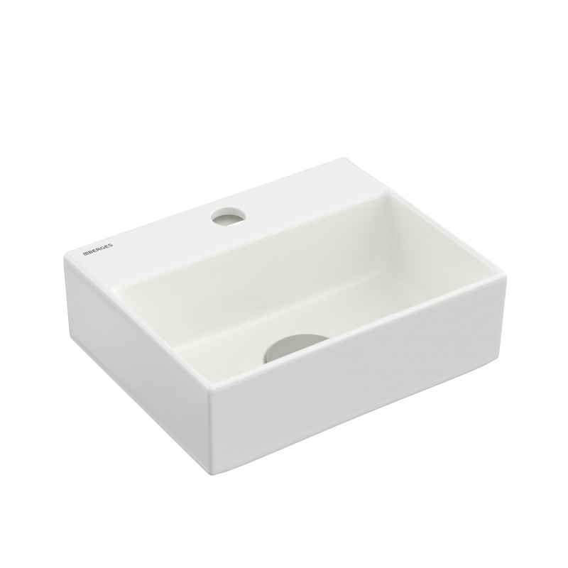 Подвесная раковина из санфарфора Berges Small размером 29х24х9 см. Прямоугольная, с отверстием под смеситель, глянцевая белая. Крепеж в комплекте. Подходит для использования на столешнице.