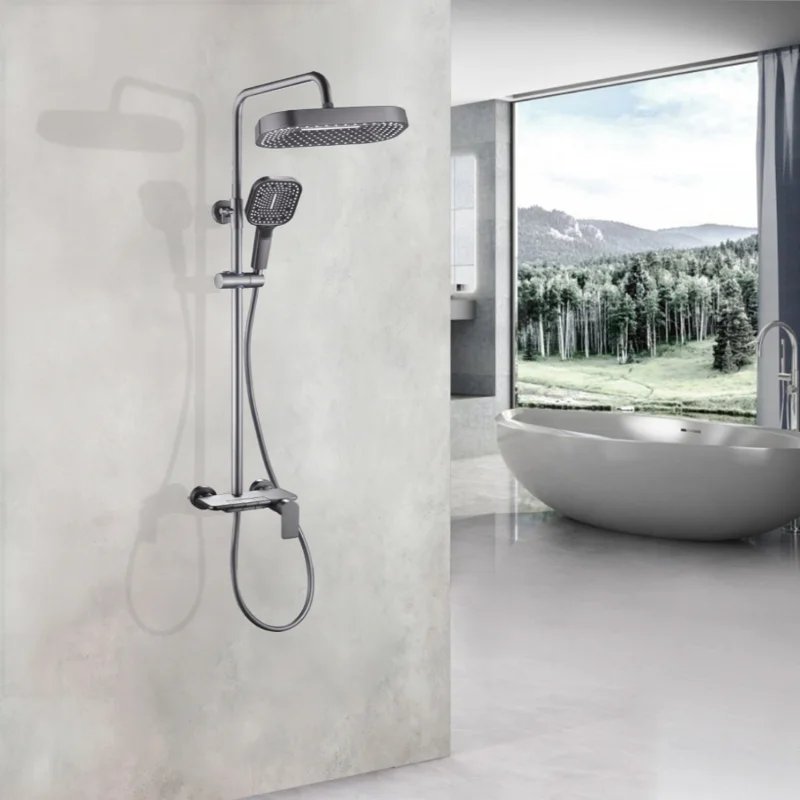 Душевая стойка со смесителем ALMAes оружейная сталь