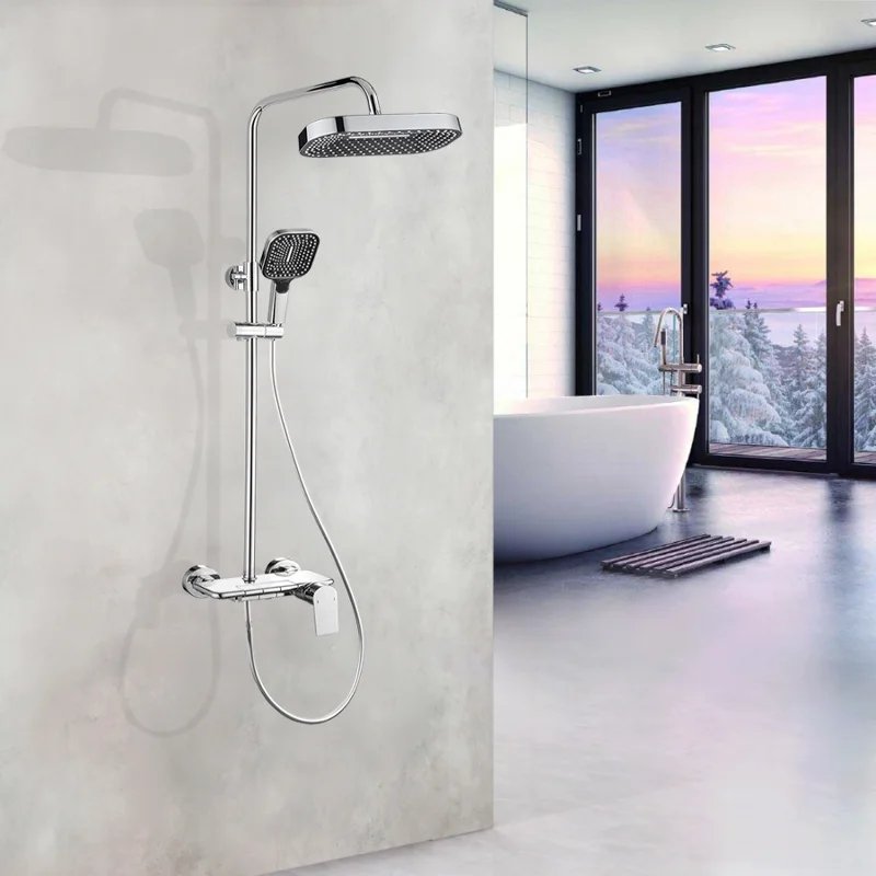 Тропический душ размером 300*200 мм позволит Вам получить максимальное наслаждение от каждого приема душа!Верхняя лейка меняет угол наклона от 0 до 22 градусов. Материал ABC пластик. Душевая штанга регулируется по высоте. Ручная лейка имеет 3 режима струи материал ABC пластик. Держатель для ручной лейки с изменяющимся углом поворота лейки на...