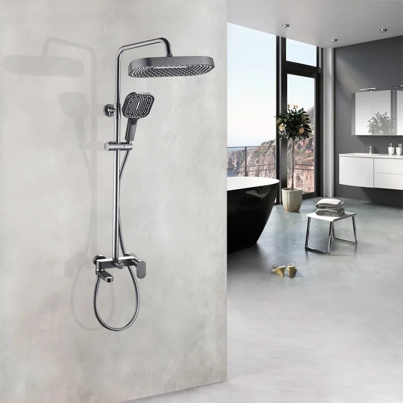 Душевая стойка со смесителем ALMAes оружейная сталь