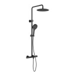 Душевая стойка с термостатом SANCOS Etna, черный мат...Душевая стойка со встроенным термостатом; Термостат со высокочувствительным катриджем SEDAL (Испания) мгновенно настраивает желаемую температуру воды; Предустановленный ограничитель температуры при 40°; Система защиты от ожогов при отключении холодной воды; Встроенный клапан защиты от обратного потока: Интегрированный в корпус смесителя переключатель потоков воды; Возможность регулировки штанги по высоте; Верхний душ 250 мм с возможностью настройки наклона; Ручной душ пластик, 3 режима; Гибкий шланг с системой защиты от перекручивания - 1,5 м , материал - пластик; Цвет матовый черный