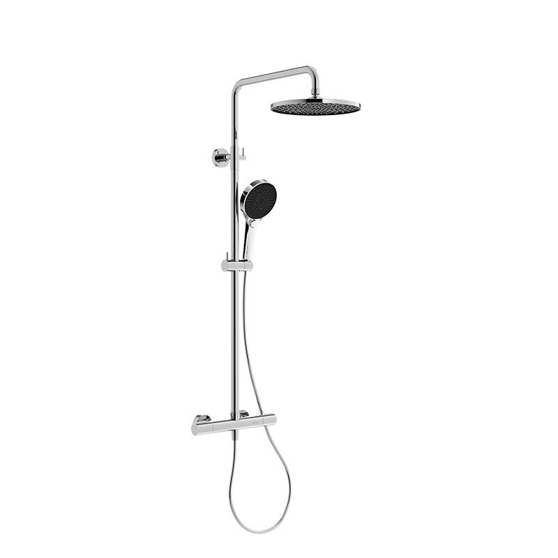 Душевая стойка со встроенным термостатом; Термостат со высокочувствительным катриджем SEDAL (Испания) мгновенно настраивает желаемую температуру воды; Предустановленный ограничитель температуры при 40°; Система защиты от ожогов при отключении холодной воды; Встроенный клапан защиты от обратного потока: Интегрированный в корпус смесителя перек...