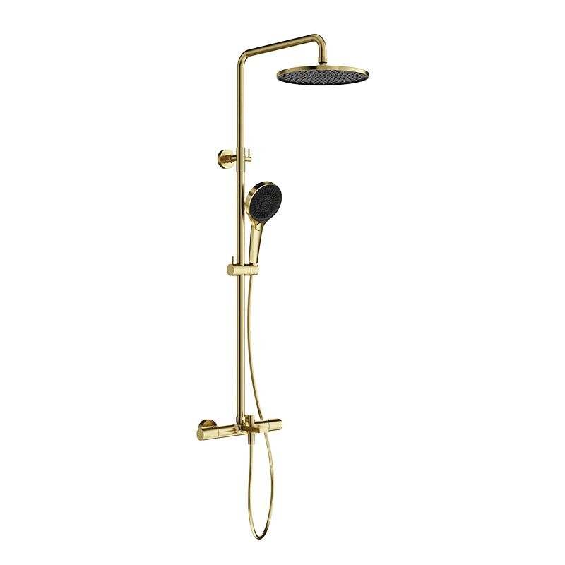 Душевая стойка с термостатом и изливом SANCOS Etna, брашированное золото, PVD покрытие, арт. SC9008BG