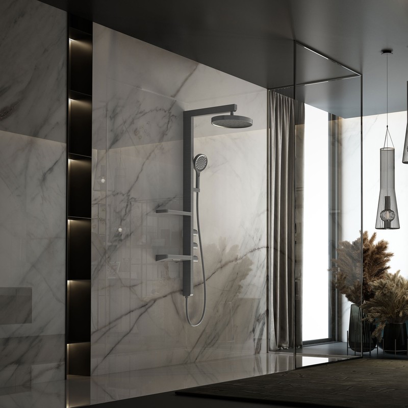 Душевая стойка Vincea Inspire VSFS-3I11GM с изливом, 30см верх душ, вороненая сталь