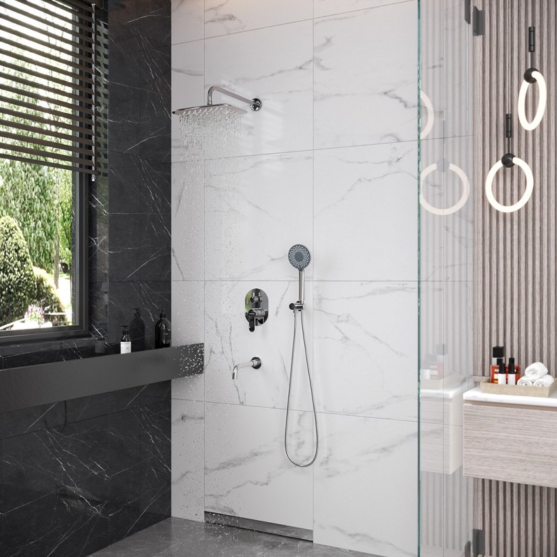 Душевой комплект BERGES VENTAS 3O - встраиваемый душевой комплект обладает трёхрежимной системой и состоит из верхней лейки - «тропического ливня», ручного душа, излива и смесителя. Лейка верхнего душа имеет инновационную систему самоочистки в виде гибких силиконовых вставок на форсунках душа, которые защищают изделие от известковых отложений. В...