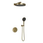 Душевой комплект с термостатом SANCOS Etna, с внутре...Смеситель со встроенным термостатом; Надежный корпус из высококачественной латуни; Термостатический картридж SEDAL (Испания) - обеспечивает точную настройку заданной температуры; Встроенный девиатор SEDAL (ИСпания) автоматически переклюключает поток с верхнего душа на ручной при выключении воды. Ручной душ из латуни; Шланг ПВХ с системой защиты от перекручивания, длина 1,5 м; Верхний душ из нержавеюшей стали , Ø250 мм, с возможностью регулировки угла наклона; прочное покртытие методом электроплейтинга; цвет матовый черный ; экстрапрочное PVD покрытие; Цвет брашированное золото