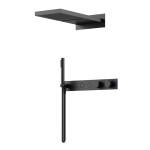 Душевой комплект с термостатом SANCOS Linn, с внутре...Смеситель со встроенным термостатом; Надежный корпус из высококачественной латуни; Термостатический картридж SEDAL - обеспечивает точную настройку заданной температуры; Встроенный девиатор автоматически переклюключает поток с верхнего душа на ручной при выключении воды. Ручной душ из латуни со шлангом из ПВХ с системой защиты от перекручивания, длина 1,5 м. Верхний душ из нержавеюшей стали ; Верхний душ 250x250 мм, с возможностью регулировки угла наклона; прочное покрытие методом электроплейтинга, цвет черный матовый