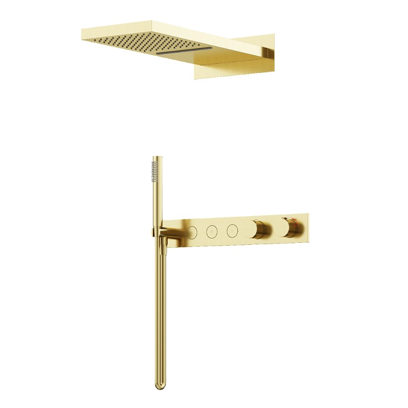 Душевой комплект с термостатом SANCOS Linn, с внутренней частью, брашированное золото, PVD покрытие, арт. SC9023BG