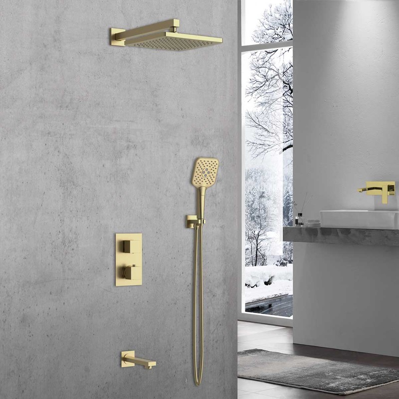 Душевой комплект Vincea Next VSFW-1N3TBG термостатический встраиваемый, трехрежимный, брашированное золото