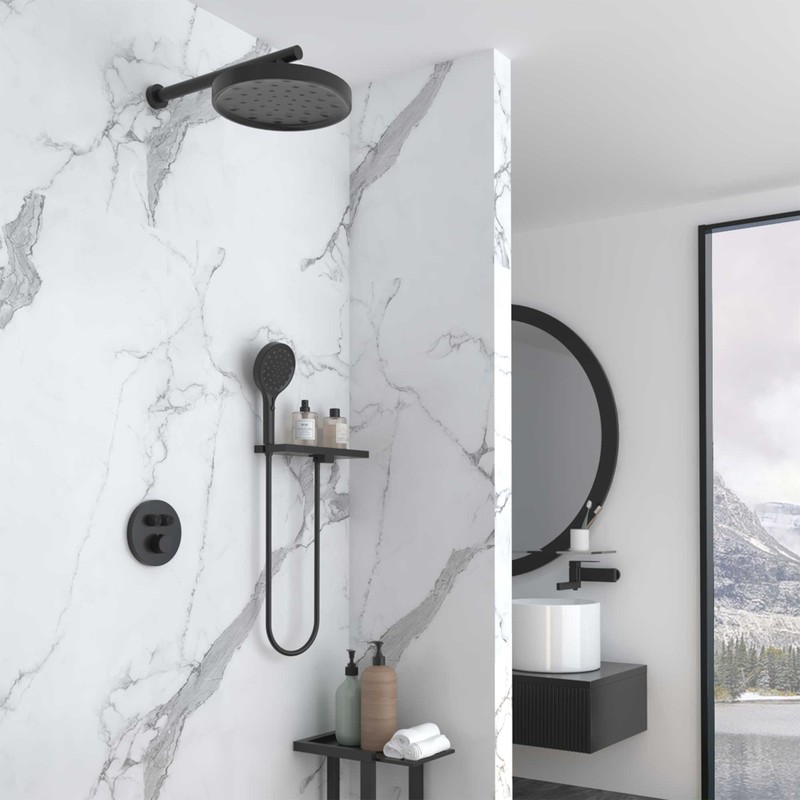 Душевой комплект Vincea Inspire VSFW-3I22MT2RMB встраиваемый, термостатический, двухрежимный, черный