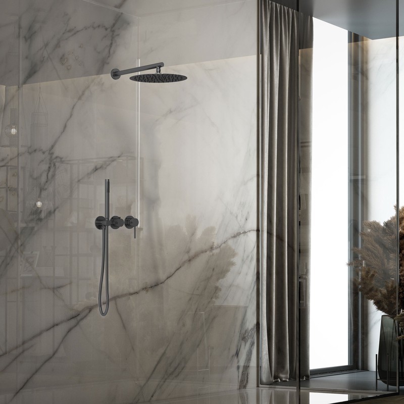 Душевой комплект Vincea Groove VSFW-4G01GM встраиваемый, 2 режима, 30см верх душ, вороненая сталь