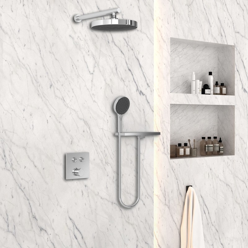 Верхний душ, полка с изливом и держателем ручного душа, ручной душ, смеситель со встраиваемой частью
