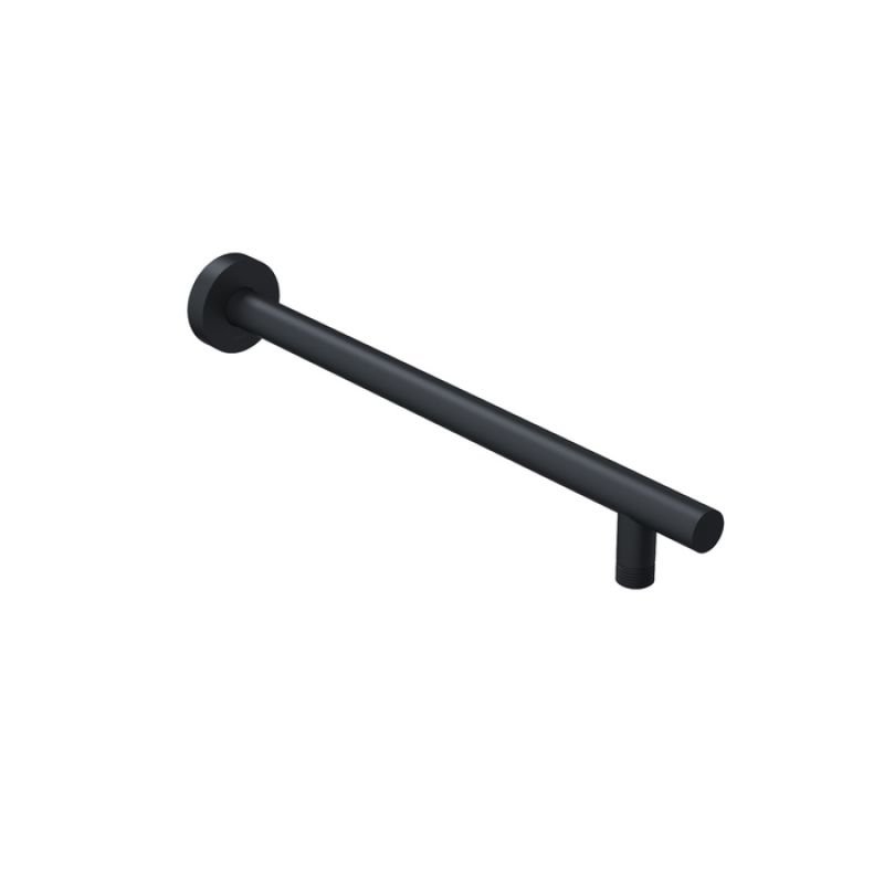Черный матовый Г-образный настенный кронштейн для верхней душевой лейки. Круглое сечение, длина 400 мм. Совместим с любыми черными верхними лейками IDDIS® с подключением G 1/2, а также с лейками других производителей.