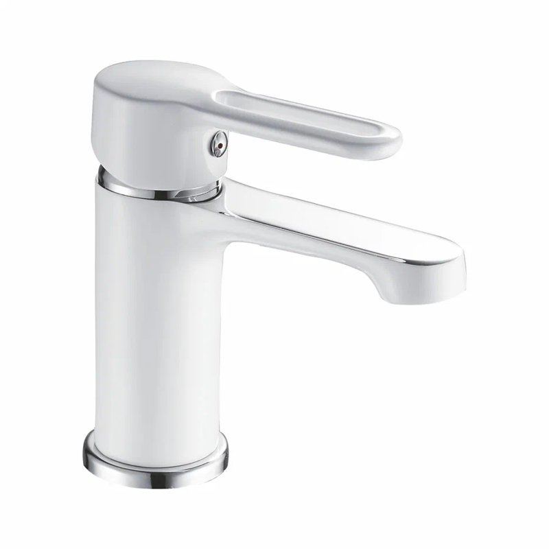 Смеситель для раковины Shevanik S8101F, белый/хром. Стилистика дизайна: Современный cтиль. Монтаж: на раковину. Излив: традиционный, фиксированный. Подводка: гибкая, 1/2" . Материал: латунь.