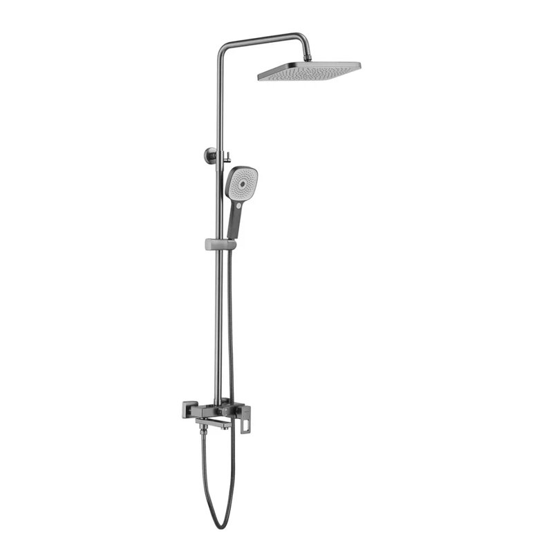 Душевая система Shevanik S8236T, оружейная сталь. Количество режимов струи: 3. Размер верхнего душа: 29,5x19 см. Управление: рычажное. Излив для наполнения ванны: да.