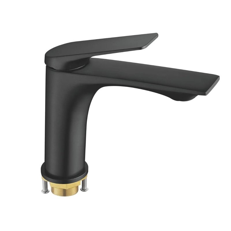 Смеситель для раковины Shevanik S9101H, черный. Стилистика дизайна: Современный cтиль. Монтаж: на раковину. Излив: традиционный, фиксированный. Подводка: гибкая, 1/2" . Материал: латунь.