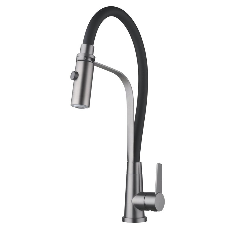 Смеситель для кухни с гибким изливом и режимом "душ" Shevanik S943T-3, оружейная сталь