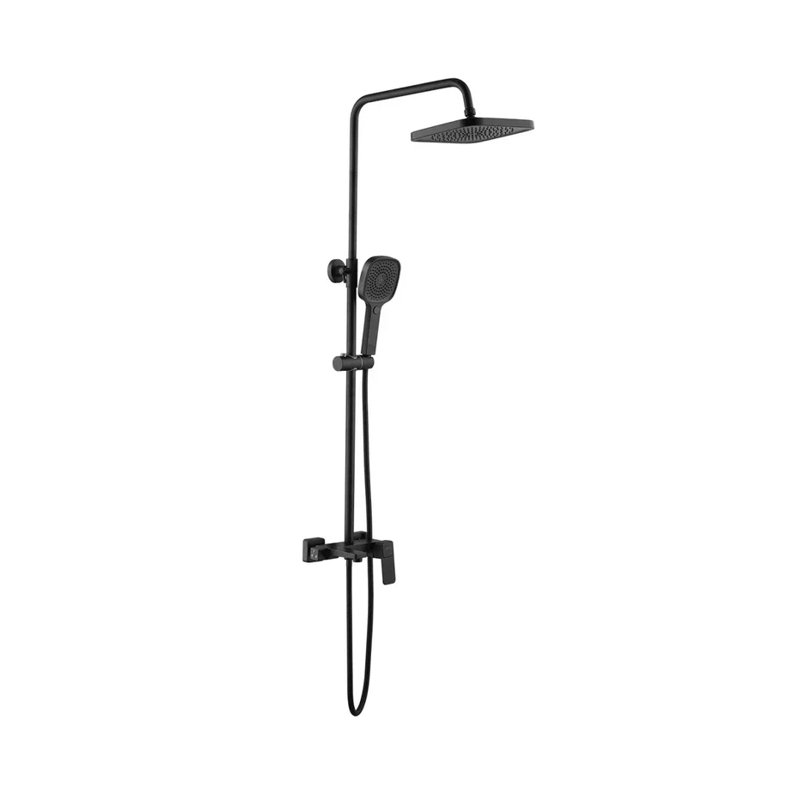 Душевая система Shevanik S9736H, черный. Количество режимов струи: 3. Размер верхнего душа: 22,5x22,5 см. Управление: рычажное. Излив для наполнения ванны: да.