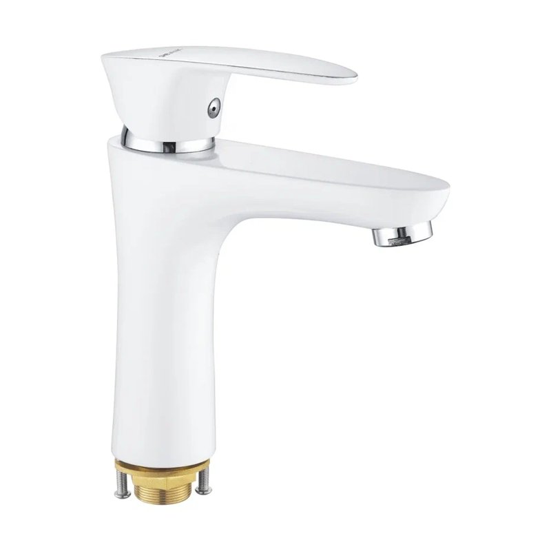Смеситель для раковины Shevanik S9801F, белый/хром. Стилистика дизайна: Современный cтиль. Монтаж: на раковину. Излив: традиционный, фиксированный. Подводка: гибкая, 1/2" . Материал: латунь.