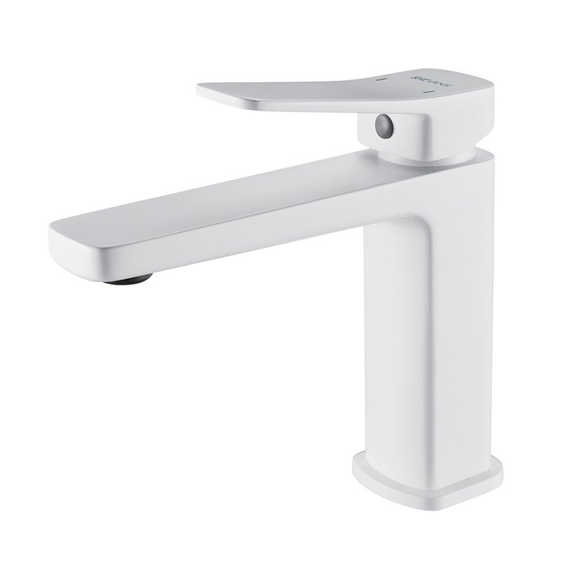 Смеситель для раковины Shevanik S9901C, белый. Стилистика дизайна: Современный cтиль. Монтаж: на раковину. Излив: традиционный, фиксированный. Подводка: гибкая, 1/2" . Материал: латунь.