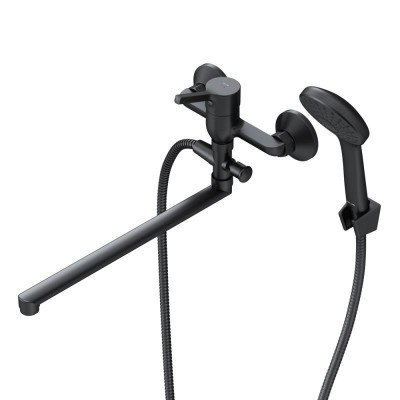 Стильное универсальное решение для ванной комнаты - качественный смеситель для ванны и душа с длинным поворотным изливом с душевым набором.