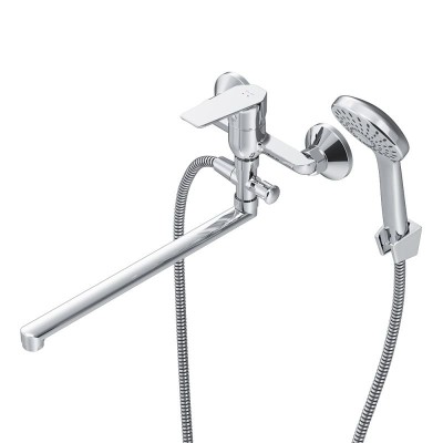 Стильное универсальное решение для ванной комнаты - качественный смеситель для ванны и душа с длинным поворотным изливом с душевым набором.