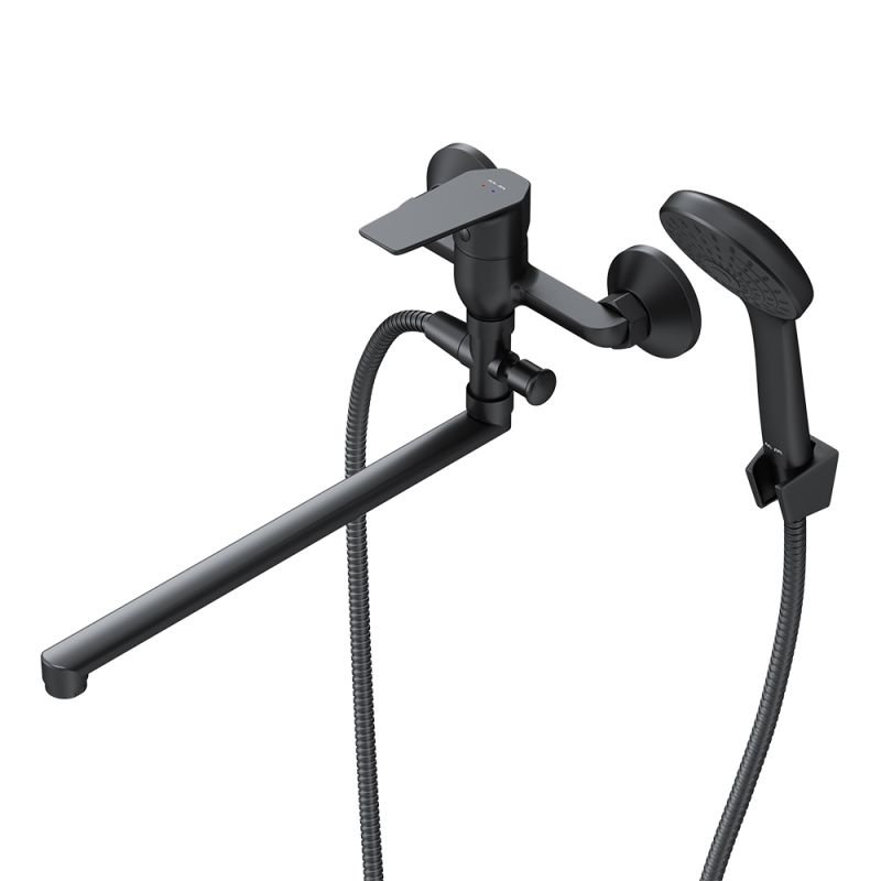 Стильное универсальное решение для ванной комнаты - качественный смеситель для ванны и душа с длинным поворотным изливом с душевым набором.