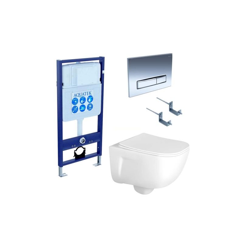 Комплект унитаза с инсталляцией Aquatek Set Aquatek Дива 4в1 с сиденьем Микролифт и клавишей смыва Хром глянцевый