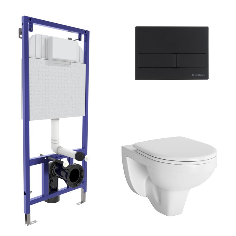 Комплект BERGES для монтажа подвесного унитаза GAMMA: инсталляция NOVUM525, кнопка L5, унитаз с сиденьем микролифт, быстросъем