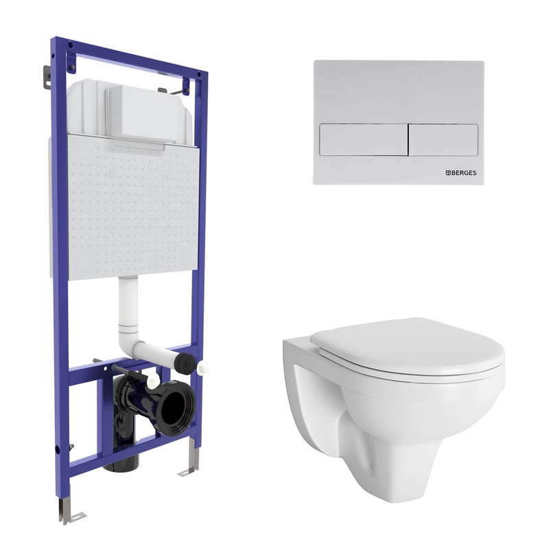 Комплект BERGES для монтажа подвесного унитаза GAMMA: инсталляция NOVUM525, кнопка L4, унитаз с сиденьем микролифт, быстросъем