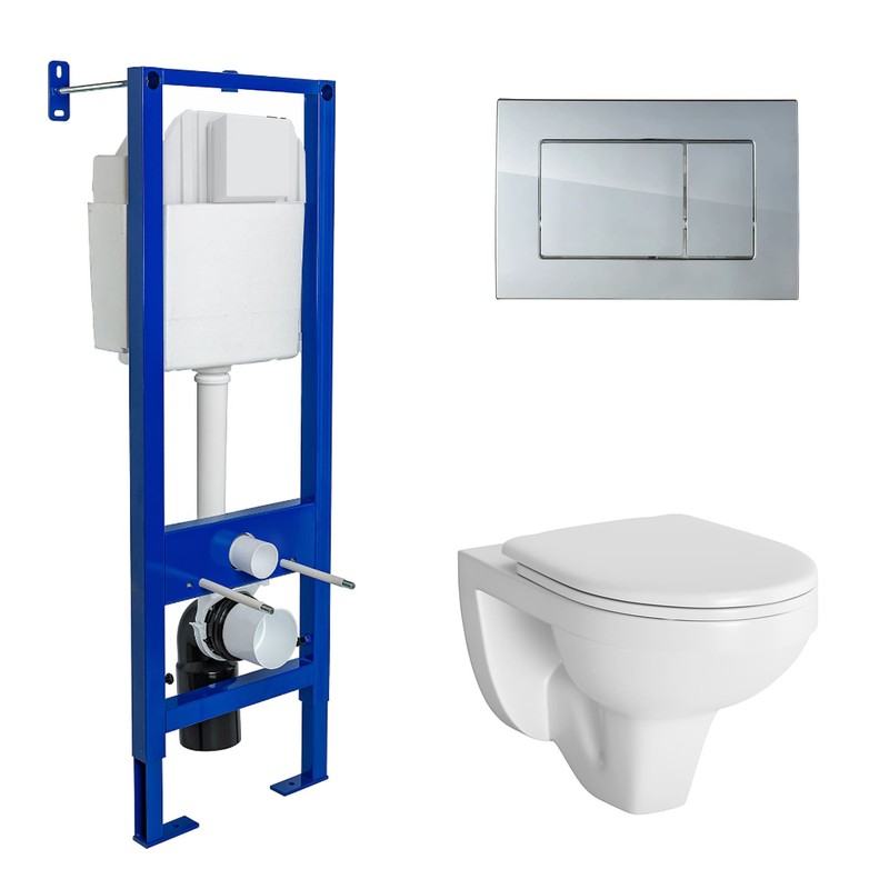 Комплект BERGES для монтажа подвесного унитаза GAMMA: инсталляция АТОМ410, кнопка Atom хром, унитаз с сиденьем микролифт, быстросъем