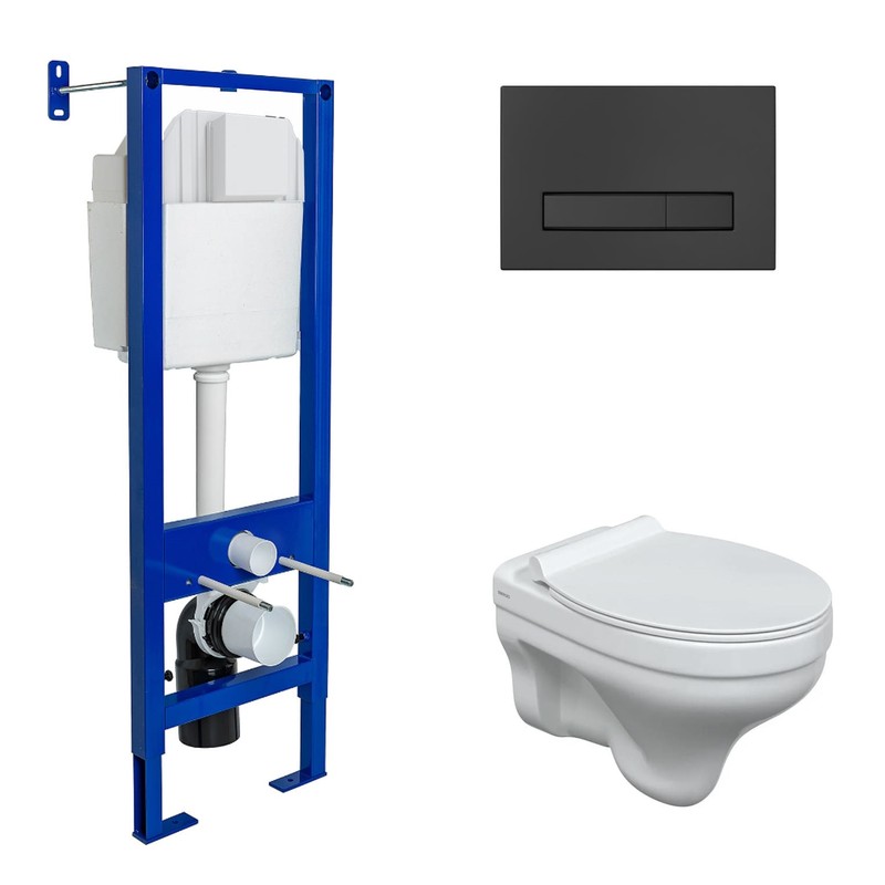 Полный Комплект ATOM Line 410 для монтажа подвесного унитаза: инсталляция, кнопка черная Soft Touch: стальная рама с антикоррозийным покрытием,
