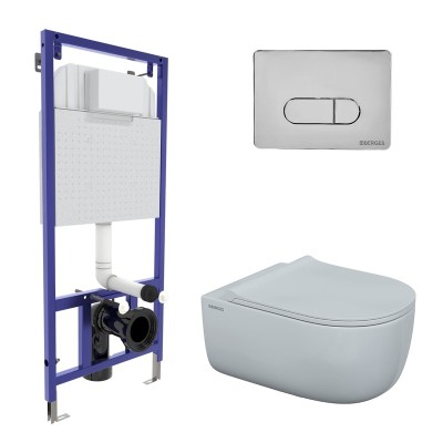 Комплект BERGES для монтажа подвесного унитаза: инсталляция NOVUM525, кнопка D3 хром глянец, унитаз EGO XL Rimless, сиденье дюропласт Toma Slim SO, микролифт, быстросъем