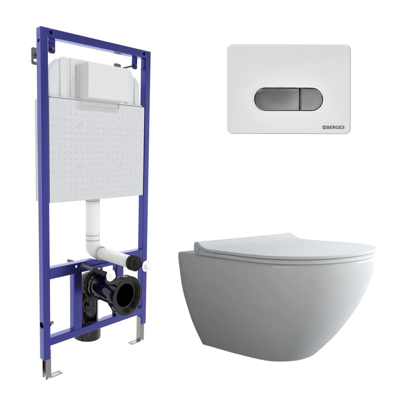 Комплект BERGES: инсталляция NOVUM, кнопка D7, унитаз PUMA Rimless 51 см, сиденье дюропласт Toma Slim SO