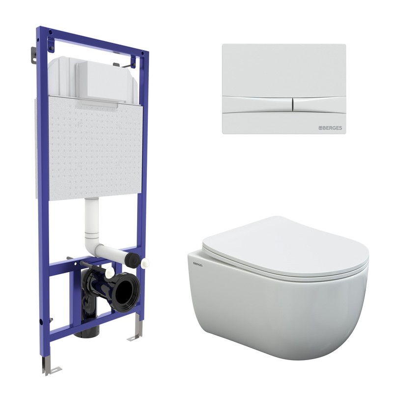 Комплект BERGES: инсталляция NOVUM кнопка белая F1, унитаз VENTAS, сиденье дюропласт Ventas Slim SO