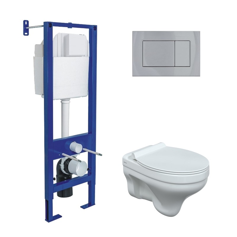 Полный Комплект ATOM для монтажа подвесного унитаза: инсталляция, кнопка хром глянец: cтальная рама с антикоррозийным покрытием,