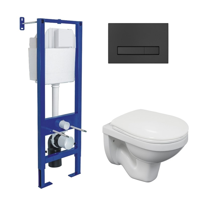 Полный Комплект ATOM Line для монтажа подвесного унитаза: инсталляция, кнопка черная SoftTouch: cтальная рама с антикоррозийным покрытием,