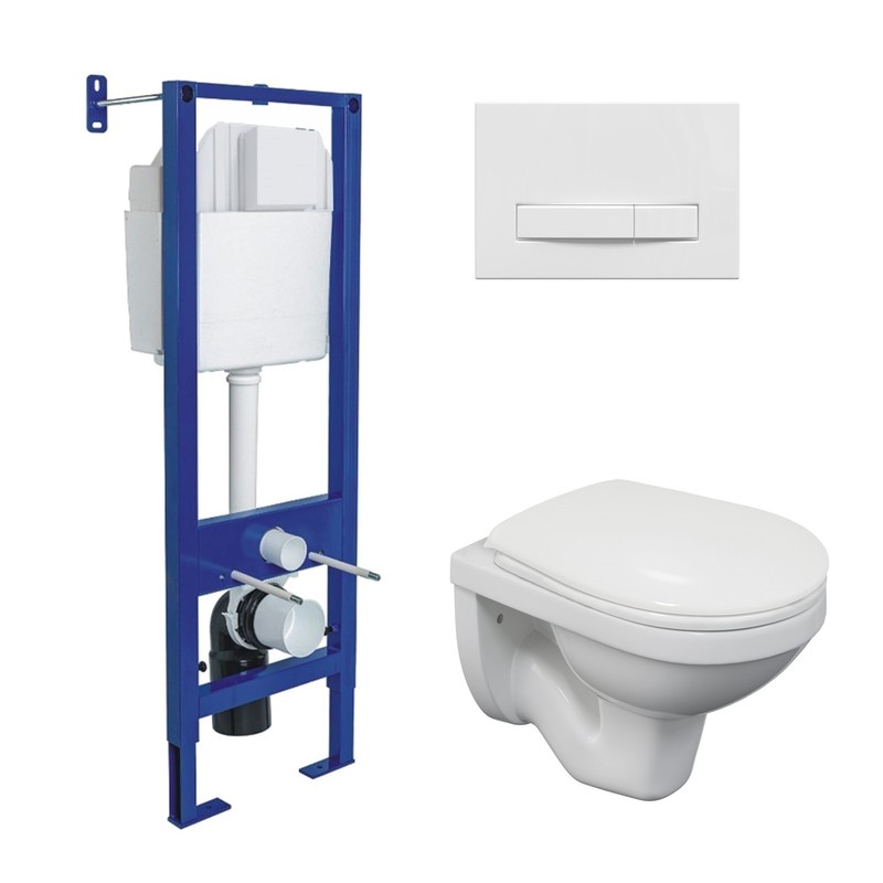 Полный Комплект ATOM Line для монтажа подвесного унитаза: инсталляция, кнопка белая: cтальная рама с антикоррозийным покрытием,