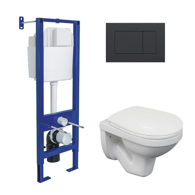 Полный Комплект ATOM для монтажа подвесного унитаза: инсталляция, кнопка черная SoftTouch: cтальная рама с антикоррозийным покрытием,
