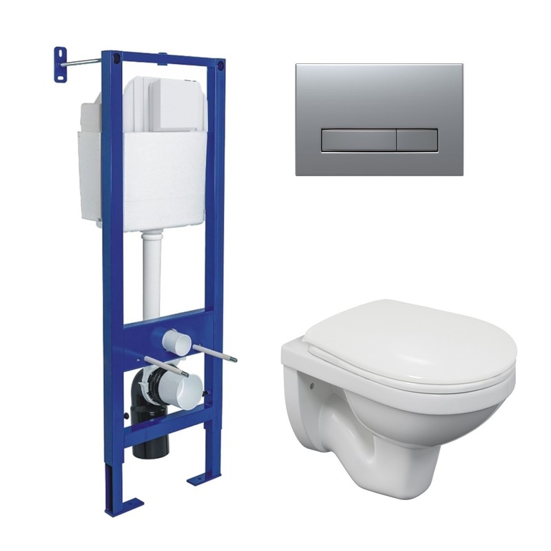 Полный Комплект ATOM Line для монтажа подвесного унитаза: инсталляция, кнопка матовый хром: cтальная рама с антикоррозийным покрытием,